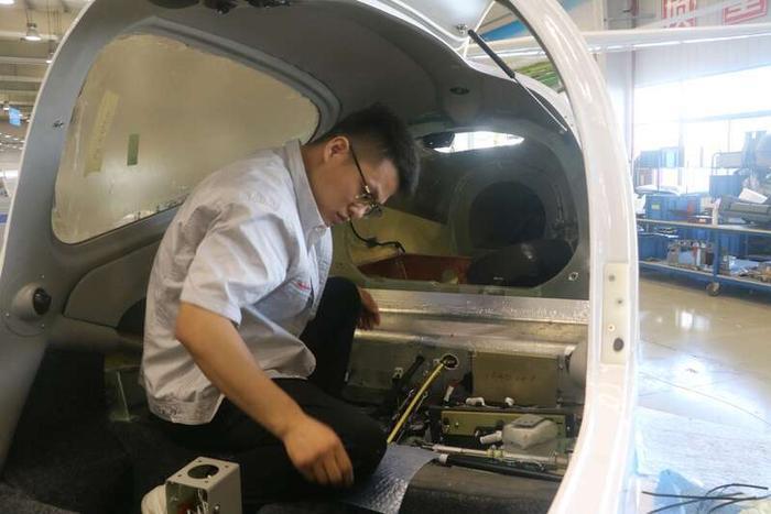 中国青年报客户端讯(中青报·中青网记者 王海涵 宁迪)“布线就像是给飞机搭建神经系统,将电信号联通,保障飞机各系统间通信和设备供电,这项工作特别考验耐心和细心。”7月3日下午,在中电科芜湖钻石飞机制造有限公司(简称“电科飞机”),95后刘前志正专注于手头的航电布线工作。2019年,他从长沙航空职业技术学院航空机电设备维修专业毕业后,投身电科飞机生产线。