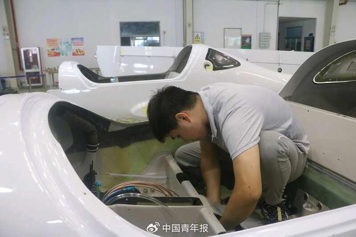 祁晨昊在机身内进行装配。中青报·中青网记者 王海涵/摄